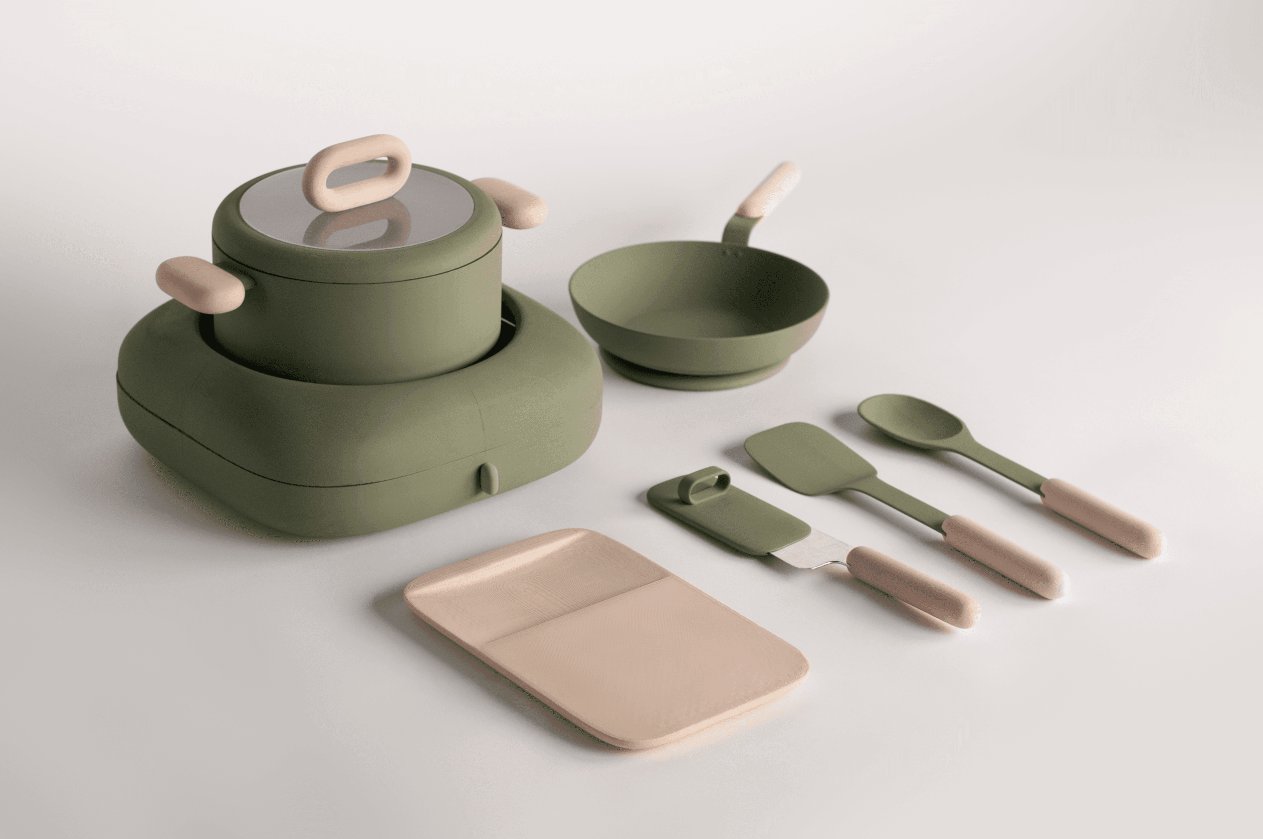 Sprout is a cookware set designed to help children build independence and kitchen skills while remaining relevant as they grow. Developed collaboratively as an academic project.